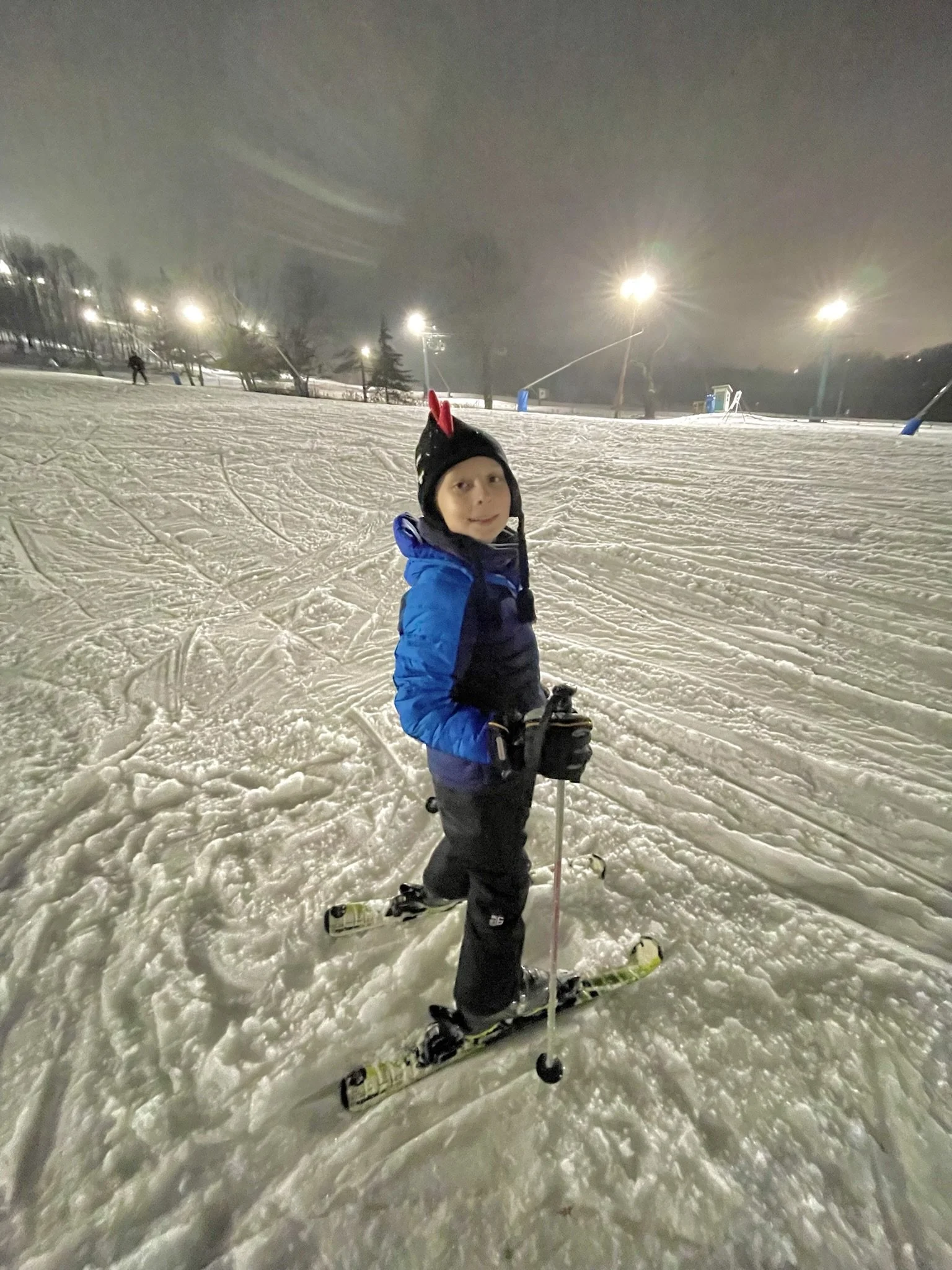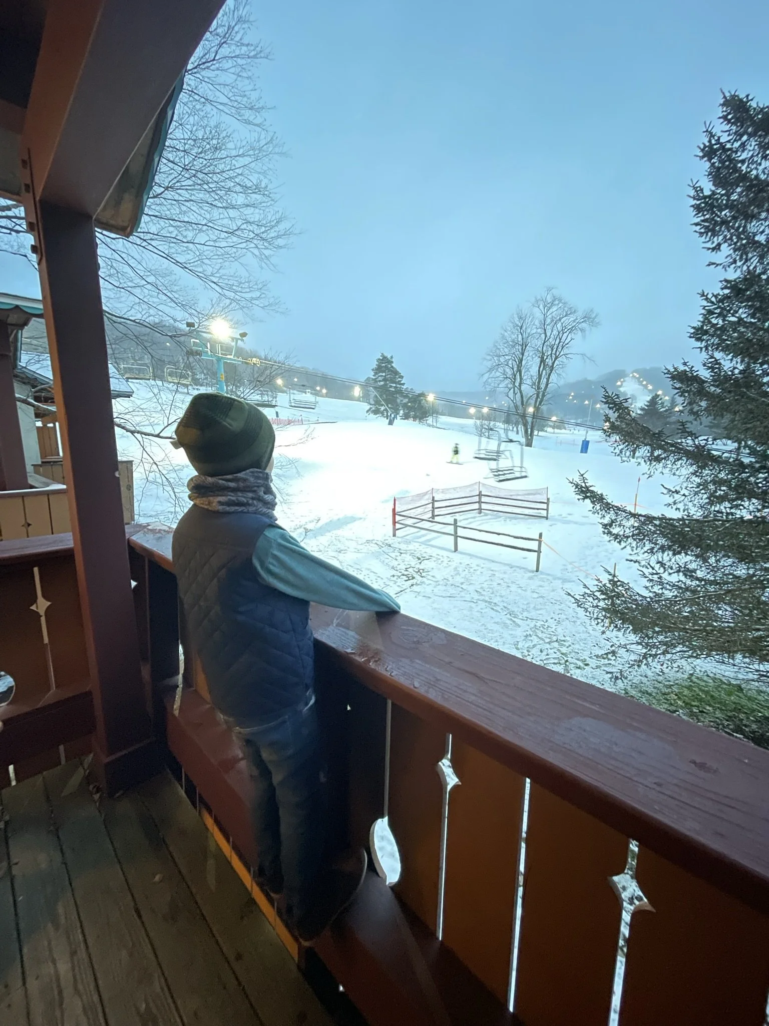 We were still early in the season, especially for NY skiing, so the real snow was minimal, but the slopes were groomed and ready for our night ski lessons when we arrived. We did battle a little with the weather as it kept warming up to the high-30’s and melting our snow! But, there were several beginner slopes and areas to grow our skills—both as the kiddos got more confident with their skiing and I got more comfortable with them skiing away from me. Maybe “comfortable” isn’t the right word, since I lost my voice screaming at the little daredevils to SLOW DOWN.